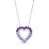 Vibrant Shades Amethyst, Tanzanite, White Sapphire Heart Necklace Sterling Silver 18″